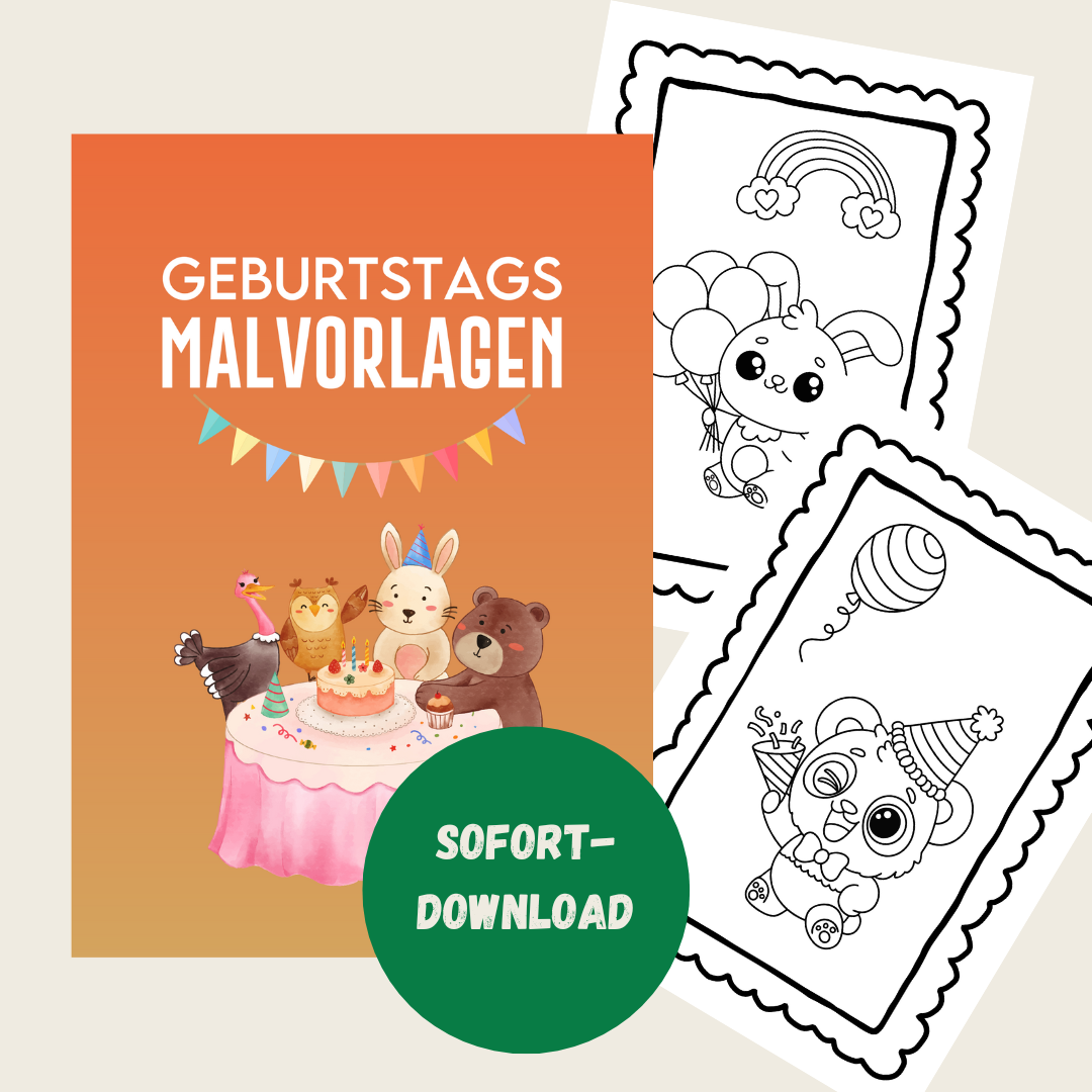 Geburtstags-Malvorlagen – 20 süße Tiermotive zum Sofort-Download! 🦁🎂